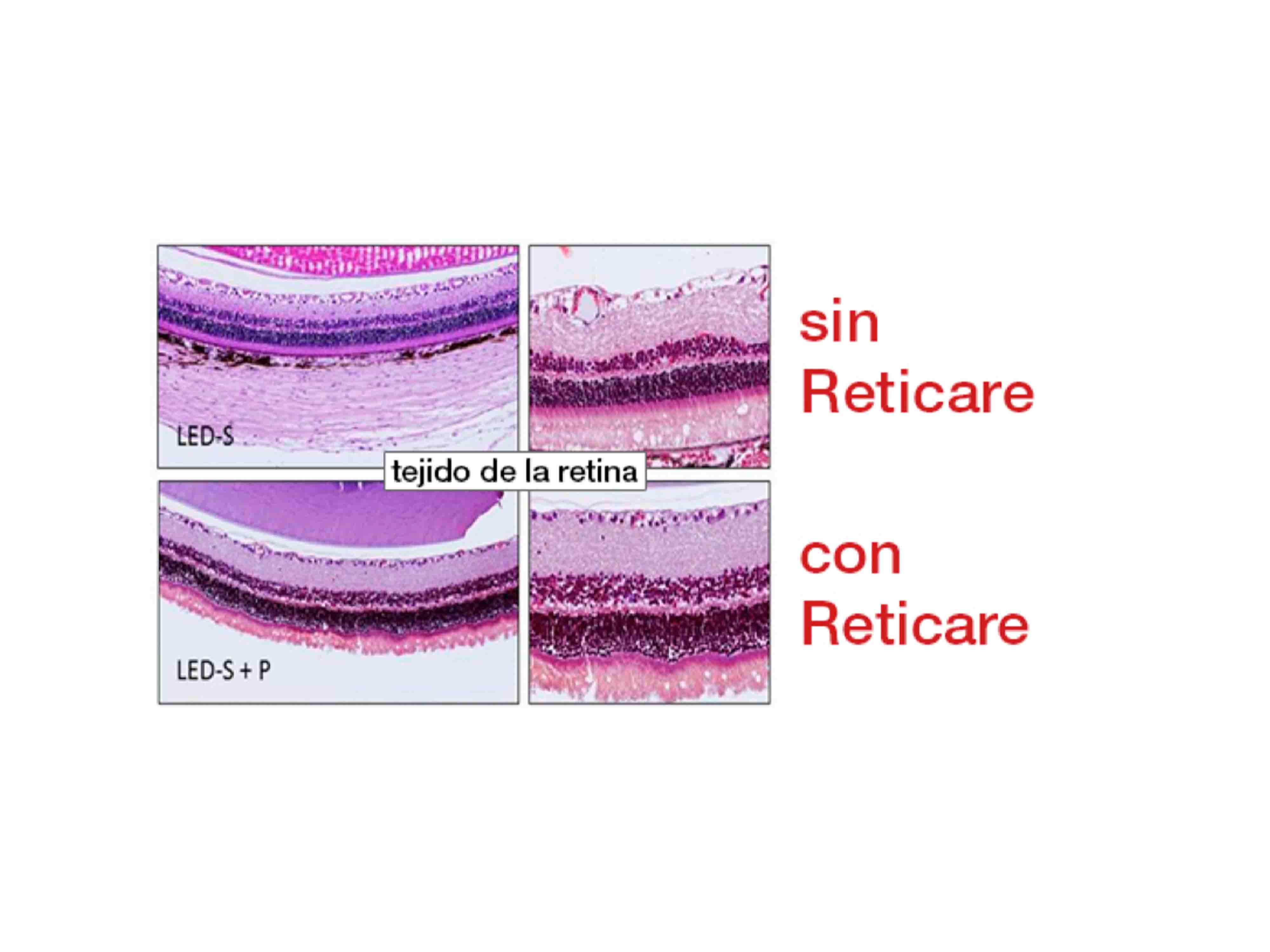In the rats protected with Reticare technology, retinal damage is practically nonexistent.